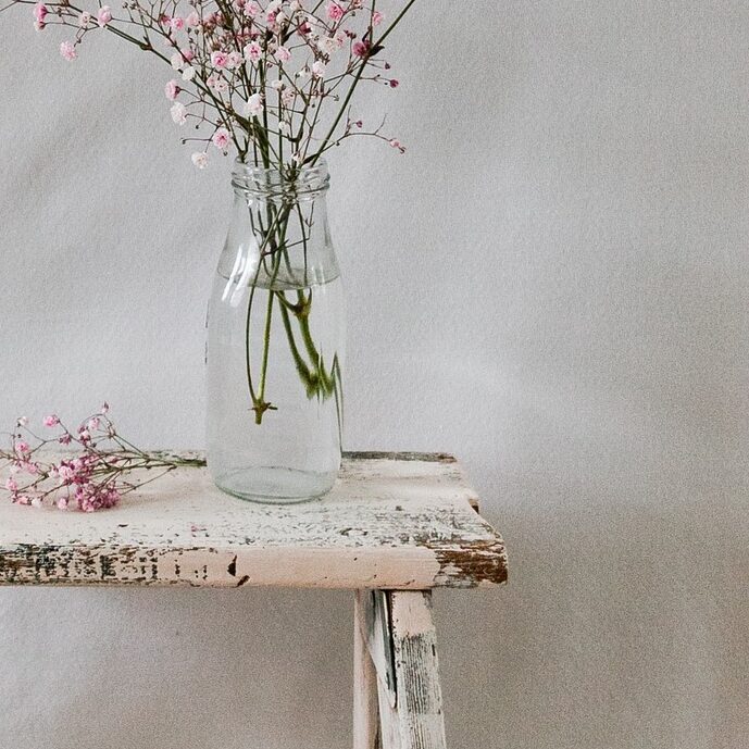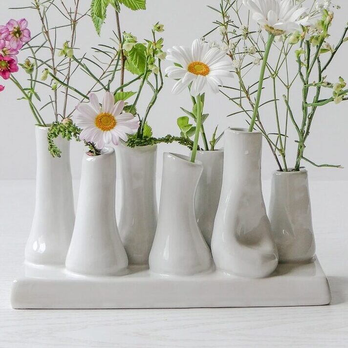 シンプル白鉢 花柄